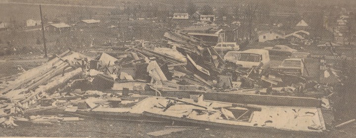 An old issue of the Livingston Enterprise dated April 11, 1974 saved over the years by Kenneth Carr of Livingston was loaned to me by Kenneth’s son, Sid. The headlines printed in large red lettering on that issue read: Tornadoes Rip Overton County. A story in that issue was titled Three Dead in Walk of Worst Tornado Since 1933. Here is the story: "Three Overton Countians lost their lives in the savage storm which spawned tornadoes here last Wednesday night, April 3. Mrs. Birth Janitte Dailey, 32, of Route 1, Monroe, and Wilbur Rodger Nolen, 39, of Route 4, Livingston, were killed with a twister touched down here at approximately 11:30 p.m. Mr. Nolen’s wife, Pricilla Brown Nolen, 33, survived the tempest when it struck her home only to die a short time later. "Mrs. Dailey and her husband, Edward, had been unable to reach their home following the tornadoes which touched down in the Monroe area around 7:30 p.m. During the early evening storm they took shelter in a friends’ home and later found the road to their home blocked by fallen trees. They returned to Livingston, en route to a sister’s home, and decided to stop and spend the night with a friend, Mrs. Margaret Letner, with whom Mrs. Dailey worked. The Letner home, a house trailer located immediately north of the U.C.E.M.C. sub-station on Celina highway, was completely demolished when the storm struck and it was blown across the road by the tornado. Mrs. Dailey died when she was blown out of the trailer. The other persons in the home, Mrs. Letner, her two children and Mr. Dailey, survived. Dwayne Letner, about two years of age, received a broken collar bone, a hip out of joint and one leg was broken in two places. Mr. Dailey was bruised extensively and suffered multiple abrasions. Mrs. Letner and her daughter, Tonya, about nine years of age, escaped with minor cuts and bruises. "According to reports, Mr. and Mrs. Nolen, their children and his sister, Vesta Nolen, spent the early part of the evening in the basement of their home. The double-wide house trailer home was located on the Monroe highway approximately one mile from the Livingston city limits. It is understood that at 10 p.m. the Nolens thought the tornado watch for the area had been lifted and they went upstairs to bed. When the storm struck about 11:30, the home was blown completely to pieces. The Nolen’s 13-year-old daughter, Anita, was blown across the highway where she landed near a born which was also splintered by the tornadic winds. The child is reported in satisfactory condition in a Nashville hospital where she is receiving treatment for at least four straight pins found driven into her body. She has also undergone plastic surgery for cuts on her face and neck." Owner and editor of the Livingston Enterprise Richard Knight, wrote this in his regular column Knight Line following that disaster: "Last Wednesday night’s tornadoes truly played havoc with the lives of the large segment of Overton County residents. Those not immediately involved in the disaster find it beyond their power of comprehension to imagine the emergencies which arise when everything one possesses has been swept away in a mere matter of seconds. With no electricity, no means of communication, and no place for shelter out of the furious wind and pelting rain. The first few bleak hours following the disaster certainly test the strength of the human mind to cope with the situation. There are countless stories that could and should be told of neighbors, law enforcement officials, members of the rescue squad, doctors, nurses, emergency personnel from every organization, civilian volunteers and just plain ordinary people going to the aid of the stricken people. "The loss of electricity during the fury of the storm seemed to effect everyone the greatest and create the most concern. Our hates are off to the linemen with UCEMC and even member of the co-op who worked the long, tiring hours to restore electricity. Electricity was essential to doctors as they treated victims of the storm; emergency vehicles needed gasoline, pumped by electricity, and the list is endless. It would appear, with all of our skill and knowledge, with the use of all or our modern appliances, both at work and at home, our survival today depends on electricity. "The UCEMC sub-station which feeds electricity all across Overton County was directly in the path of the killer tornado which struck here shortly before midnight. It suffered slight damage around 7:30 when tornadoes skipped across town, but the destruction at the station and to the service lines during the final blow was of a magnitude that without a concerted effort, trained, competent personnel and an obvious plan for such emergencies the county could have been paralyzed for weeks. From a grateful county, the people say, "Thank You." |